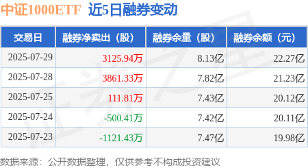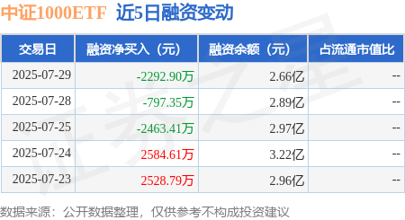 本站消息,7月29日,中证1000ETF(512100)融资买入5025.46万元,融资偿还7318.35万元,融资净卖出2292.9万元,融资余额2.66亿元。